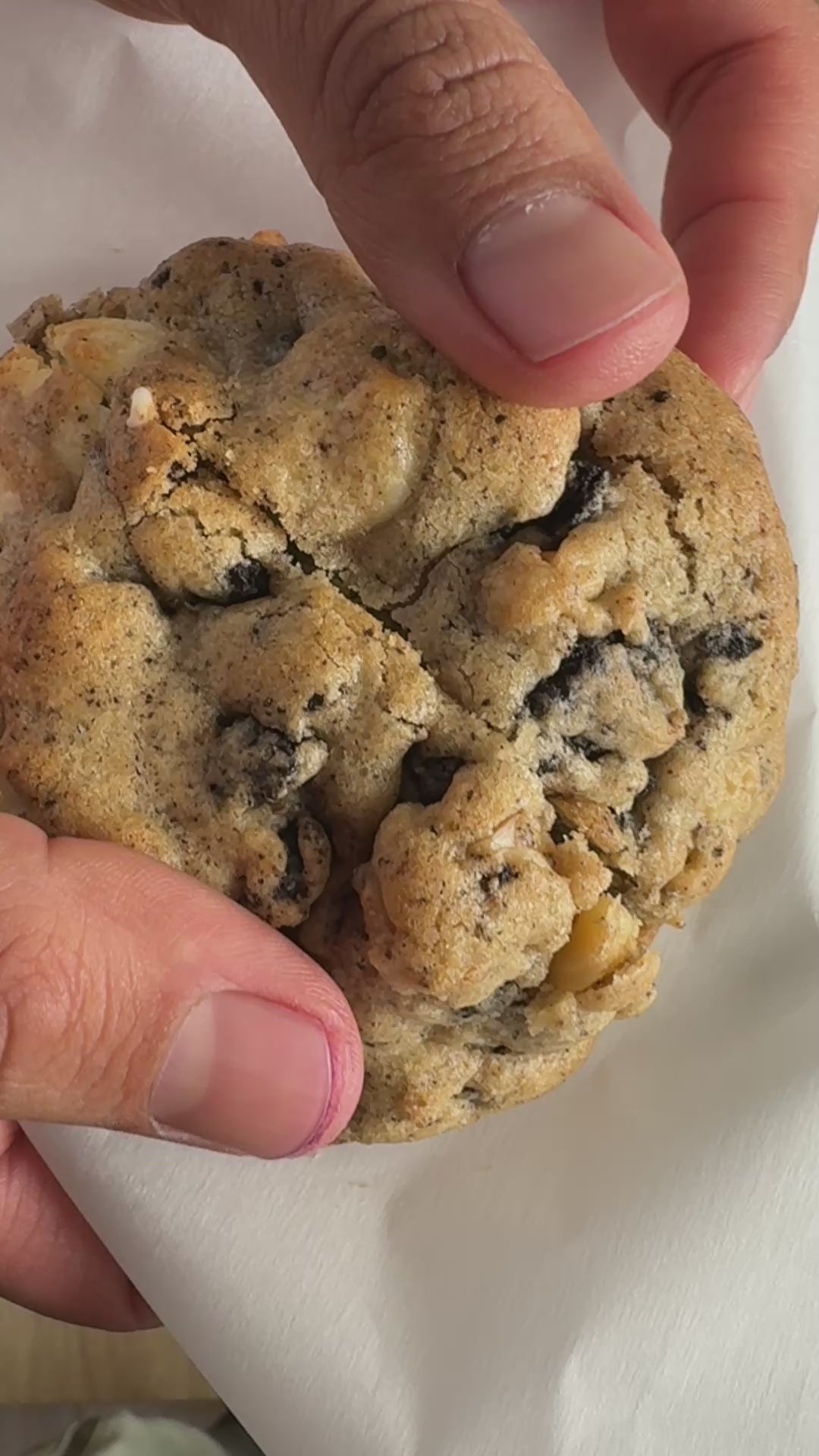 Exquisita galleta estilo NY de 150 gr apróximadamente con galletas oreo, chocolate blanco y relleno de queso philadelphia, simplemente no podrás comer solo una.